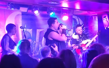 Manuel Ramil, tras la intro, comenzó la descarga tocando a los teclados los primeros pasos de “Acto de Fe” con explosión de humo en el escenario y saliendo posteriormente el resto de la banda con un ovacionado Ramón que se llevó el cariño de todo el público presente en la sala. En los primeros temas hubo algún problema con el sonido de guitarra de Manuel Seoane que apenas se apreciaba, aunque se pudo solucionar y pudimos disfrutar de un guitarrista sencillamente genial en la interpretación de los solos y rítmicas que a pesar de sonar con una sola guitarra en directo mantenía esa fuerza del disco. La siguiente en sonar y una de mis favoritas fue “Renegar de Ti” que gozada oír en directo este temazo, a pesar de algún que otro problema de sonido como ya he indicado pero muy disfrutable. “Mañana vuelve a oscurecer” suena a continuación siendo uno de los temas más coreados por el público que ya estaba metido de lleno en el concierto. La voz de Ramón Lage suena increíble junto con los coros del bajista Jesús Cámara de la genial banda zamorana Death&Legacy (que os recomiendo tanto en disco como en directo) que aporta esa fuerza y puntuales sonidos guturales que podrían explorar en sus próximas entregas. “Y aún siento estar ahí” y “Ritual” son las siguientes en tomar protagonismo con excepcional solo de Manuel Seoane en la primera, sonando en ambos temas realmente compenetrados y sabiendo que han ganado la partida y el público disfruta coreando los estribillos y mostrando su cariño a la banda que responde con una gran sonrisa para la audiencia. “¿Y ahora qué?” continua la descarga junto con la balada “La última noche” cantada de forma excepcional y muy sentimental por parte de Ramón dedicada a una amiga fallecida, terminando con un gran solo por parte de Manuel Seoane con pinceladas de The Phantom of the Opera, poco a poco se van incorporando los miembros de la banda que habían dejado solo en el escenario a Manuel Seoane para dar paso a la versión de Chris Isaak “Wicked Game” que recuerda más a la estupenda versión que hizo H.I.M. que a la original. Parece que se nos empieza a acabar el tiempo y “El Mirlo” despliega sus alas mostrando que ya es un clásico y con la gente totalmente entregada de nuevo con explosiones de humo y juegos de luces. “Luz ni Tiempo” o lo que es lo mismo 10 minutos de metal con continuos cambios, muy bien Dave a la batería que muestra la versatilidad y potencia del tema y ese riff que se te queda en la cabeza al escucharlo en una interpretación muy buena de la banda, nos da paso al final del bolo con “Cárcel de Cristal”, tema con el que comenzó todo en 2022 y que supone el cierre del concierto por todo lo alto con todo el público coreando la canción que suena realmente bien en directo, emocionante y potente. Gran comunión entre la banda y público dejando un muy buen sabor de boca y esa sensación de querer oír mucho más. Una de las grandes bandas nacionales del momento con un disco de sobresaliente y un directo arrollador, potente y emotivo a la par. Espero volver a ver a la banda en otro concierto tan bueno como el que pude presenciar y que Delalma continúe por mucho tiempo y no sea solo un proyecto temporal de varios músicos de otras bandas que se unen puntualmente para un par de discos. Nos merecemos que bandas así se consoliden en el panorama nacional e internacional y nos sigan deleitando con discos y directos tan buenos. Larga vida a Delalma!!!
