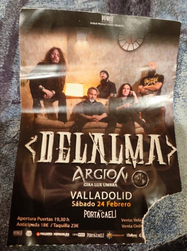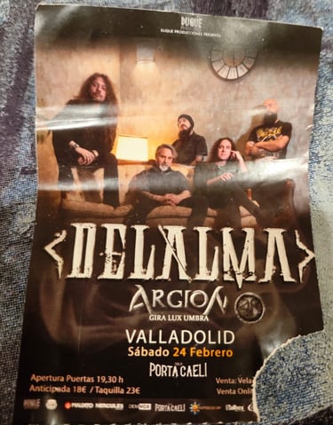 El sábado 24 de febrero a pesar de las dificultades y deberes familiares varios pude acudir a disfrutar de dos pedazo de bandas que se pasaban por Pucela a presentar sus respectivos trabajos discográficos en la ya habitual Sala Porta Caeli de Valladolid. El horario no me favoreció para nada, la apertura de puertas estaba prevista para las 19:30 horas y el comienzo de los conciertos era a las 20:00 horas por lo que a mi llegada ya había comenzado Argion a repartir heavy metal a los congregados en la citada sala pucelana. Después de varias idas y venidas por la ciudad por cumpleaños infantil que tuve que realizar, pude coger el coche y dirigirme rápidamente al lugar del concierto, con una gran entrada a pesar de la climatología adversa con un día lluvioso y ventoso en la ciudad, y con un público de todas las edades que poco a poco iba tomando posiciones en la sala por lo que a la hora del comienzo del concierto de Delalma podríamos decir que rozaba el lleno. Es una gozada ver como el público responde y acude a los conciertos, en este caso de dos bandas nacionales y disfruta al máximo de nuestro estilo de música apoyando a los músicos y promotores para que esto no decaiga.