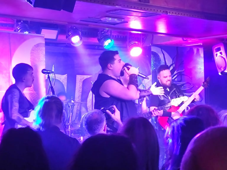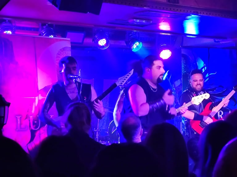 Los asturianos en esta gira presentan su último trabajo “Lux Umbra”, por lo que pude observar en los temas que presencié, se les ve rodados y compenetrados, los primeros temas que sonaron, como pude comprobar luego en el set list que amablemente me facilitó una fan de las primeras filas, tras la intro “Lux Umbra” fueron “El juicio final”, “La ciudad eterna”, “Tierra prometida”, “Hijo del diablo” y “La orden” siguiendo “Anne Bonny”, uno de mis temas preferidos de la banda, festivo y hecho para el directo que el personal disfrutó, de hecho este fue el primer tema que pude presenciar ya que es cuando pude acceder a la sala, que rabia me da el horario que últimamente se pone a los conciertos, tan temprano que particularmente me impide llegar puntual por diversos motivos por lo que no pude disfrutar del concierto de Argion en su totalidad, mis disculpas desde aquí. Argion, la banda asturiana que tuve la suerte de presenciar en acústico en el Z! Live de Zamora del año pasado en un breve, pero intenso concierto en sesión vermouth que dieron en la Plaza de la Marina de Zamora y tenía ganas de ver su versión “metálica”, ya que me gustaron bastante, no les conocía y empecé a investigar su discografía. Es una banda joven, sus componentes realmente transmiten un muy buen rollo encima del escenario, se nota que aman lo que hacen y eso se percibe por la audiencia, aparte de ser muy accesibles con los fans. He de añadir que llevan un merchandising realmente completo, me gustó mucho la gran variedad de camisetas con diferentes diseños, tazas entre variados accesorios, incluso hasta cerveza!!!. El sonido que habitualmente suele ser bastante bueno en la sala, en mi opinión estaba demasiado alto lo que provocaba que hubiera demasiado “barullo”, por lo menos en zonas cercanas al escenario y la voz del cantante Pany costaba apreciarla claramente, aunque poco a poco el sonido fue mejorando siendo bastante mejor en zonas más alejadas. Una muy buena afluencia de público que fue agradecida por la banda y en la vorágine festiva en que nos encontrábamos continuaron con “Un largo viaje” y “Corazón de León”, quisiera destacar la gran labor de sus dos guitarristas Sergio y Pablo, que me parecen realmente buenos. Para cerrar el concierto se guardaron tres grandes temas “Águila de Sangre”, “Sobre el Mar” y “Fuerza y Honor” acabando por todo lo alto y haciendo disfrutar al público en una buena actuación de un grupo que seguramente continuará su escalada y crecerá por las ganas que le ponen y su buen rollo que saben transmitir al público.