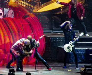 Cómo ya se me sé el show de memoria, espero al solo de Sascha para ir al WC, donde pude comprobar que hay muchas próstatas como la mía que ya no aguantan dos horas del tirón. Por suerte la proximidad de los baños desde mi ubicación hace que no me pierda prácticamente nada y que llegue a tiempo para disfrutar de “Best Time”, el tema más divertido del último disco y muy disfrutable en vivo con la participación de los tres vocalistas. No puede haber mejor tema para dar paso a nuestro Dr. Favorito, un tal "Dr. Stein" que lleva fabricando músicos de trapo desde los lejanos ochenta. Lo contagioso del conocido riff y el divertido estribillo, siempre hacen de este tema un momento totalmente festivo en los Shows de Helloween.