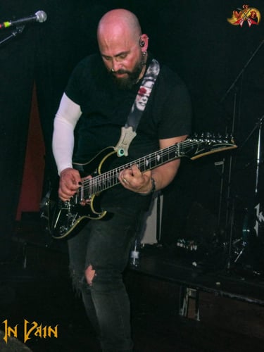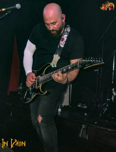 Una vez solucionados los problemas iniciales, pensé que abrirían con “Story of a lie” aprovechando la intro del tema que también sirve de apertura para su último disco, pero decidieron hacerlo con “The force of thunder”, uno de los adelantos con los que nos dieron a conocer su maravilloso “Back to nowhere”, situado muy próximo al escenario el sonido me pareció correcto, aunque, para mi gusto, la guitarra solista sonaba un poco baja con respecto a la contundencia sonora del resto de la banda, tal circunstancia no restó un ápice las ganas y el buen hacer que demostró Julio Abadía a las 6 cuerdas, demostrando que su incorporación ha sido un gran acierto para este nuevo capítulo de la historia de In Vain. La banda en su conjunto se muestra muy compacta y, con algo más de rodaje, huele a banda grande de verdad. Aunque el mayor protagonismo de In Vain se lo lleva sin duda Daniel Cordón, que además de cantar y tocar la guitarra a un gran nivel, se muestra como el verdadero alma máter de la banda, situado justo enfrente del bajista Mario Arredondo pude comprobar la importancia de una sólida base rítmica que a veces tanto cuesta apreciar en disco, la sociedad que forma junto al batería Teo Seoane es atronadora y son una parte fundamental para trasmitir en vivo la contundencia que la banda muestra en disco,