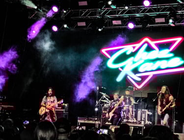 Luego vinieron la festiva "Love Gone Wild", a la que solo le faltó el saxo en vivo, suplido por teclados (ahora ya sonaban más potentes) y guitarras. "Get It On", otro ganchero tema que Chez aprovechó para presentarnos a la banda al completo.