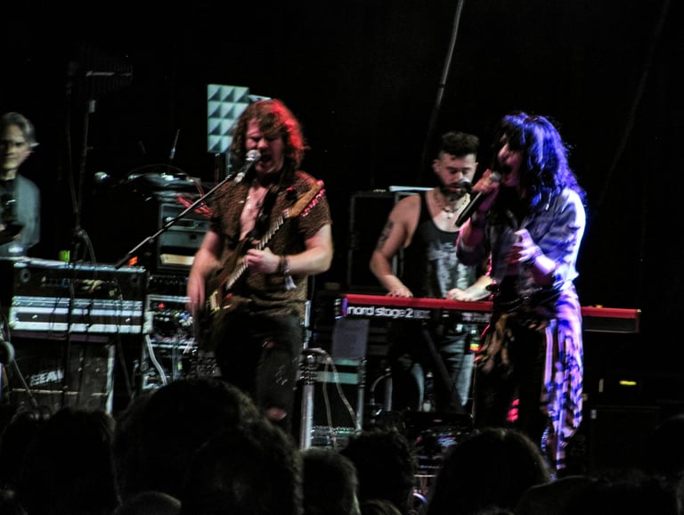 Nos iba a presentar "Nationwide", la pequeña cantante, cuando alguien le informó de algún problema técnico, circunstancia que aprovechó para alabar a sus músicos “la mejor banda del mundo" según sus propias palabras— y dar la bienvenida al ya mencionado Marcos a las teclas. Lo cierto es que a la banda se le nota mucho más rodada que cuando les vi en el Rock Imperium y se les ve disfrutar sobre el escenario, sobre todo al joven guitarrista James Ready, que además de tocar muy bien y ser quien más apoya en los coros, no deja de correr y saltar sobre el escenario.