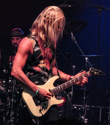 Me sorprendió gratamente la cantidad de público asistente a la temprana hora del comienzo del Show, se notaba que había hambre de buena música, a pesar de que muchos de los asistentes ya habían dado buena cuenta de los manjares que sirven en el famoso Barrio Húmedo de la capital leonesa. Allí estaba una de las bandas que más saben trasportarnos a los 80´s y 90´s, y no sólo musicalmente, estéticamente parecían haberlos sacado de cualquier garito de Los Angeles donde muchas de las grandes bandas del estilo dieron sus primeros pasos convirtiendo a la ciudad angelina en el epicentro del hard rock en su vertiente más happy. Es como si no hubiese pasado el tiempo y estuviésemos viendo un vídeo en directo en la MTV de aquellos añorados años. Comenzaron la descarga con su nuevo single “Whiskey Tango Foxtrot” de su disco Riot Avenue, que han regrabado recientemente para un recopilatorio que van a lanzar en 2024 celebrando su 20 aniversario, el sonido, sin ser perfecto, no era para nada malo, con lo que mis dudas sobre la acústica del pabellón habían sido despejadas, mucha gente se quejó del sonido en este escenario, pero en la posición que yo me encontraba sonaba realmente bien (bastante cerca de la mesa de mezclas, como de costumbre). Al que no vi en un estado de forma óptimo, aunque sacó bien el show adelante, fue a Danny Rexon, que además de tener continuos problemas de idas y venidas de sonido con su micro, al parecer venía arrastrando una gripe desde que ha dado comienzo su gira peninsular con H.E.A.T
