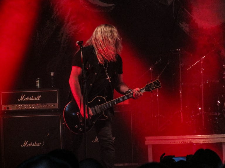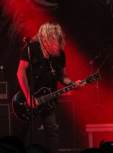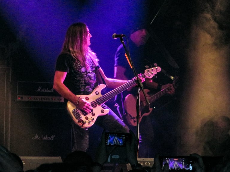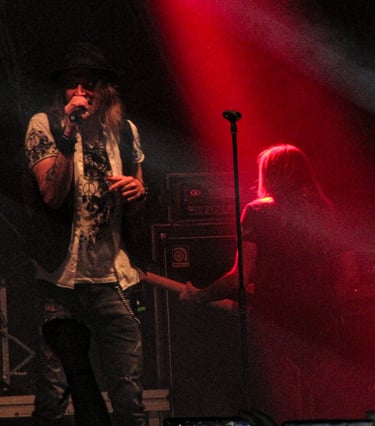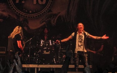 Otra de las novedades en el setlit, fue la maravillosa Point of No Return, que Kenny hace totalmente suya, haciéndonos olvidar una vez más que la popularizó Erik. Back to the Rhythm es otro clásico que han parido recientemente en su último trabajo y que pronto se ha convertido en imprescindible por derecho propio, como anécdota contar que durante este tema Dalone tuvo que cambiar de guitarra al romperse una cuerda, por suerte llegó para deleitarnos con el maravilloso solo del tema. Destacar también el nivelazo del sonido a estas alturas, equiparable a cuando la mañana anterior había estado escuchando este tema en mis cascos hi-fi a toda caña para irme poniendo a tono. De Dangerous Ground lo que más me gustó, como siempre, es cuando toda la gente acompaña a Dalone en el inicio de ese solo que en directo se convierte en un estribillo más. Me imagino que por falta de tiempo, debido al retraso acumulado, decidieron acortar el extendido inicio de A Shot at Redemption, con Kenny haciendo de las suyas para terminar el concierto por todo lo alto y demostrar una vez más, que en directo, los suecos son los que actualmente ocupan el trono del Hard Rock.