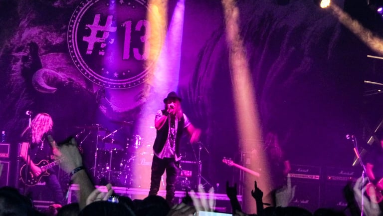 Con un vistoso telón de su último disco 13 atacan con "Every Time I Die". Al principio las guitarras me sonaban muy graves tapando en exceso a los demás instrumentos y una voz un poco baja, problemas solucionados a midad del tema y con un gran sonido a partir de ese momento. Nada más ver la reacción del público desde el primer momento, a pesar de tratarse de un tema de nueva cuña, ya entendí por qué figuraban en lo más alto del cartel.