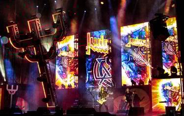 En cuanto suenan las notas del himno de Black Sabbath “War Pigs" por los altavoces ya sabes que la cosa está a punto de empezar, las pulsaciones suben y la patata se pone a saltar como si fuese la primera vez que los vas a presenciar encima del escenario y a la vez te preguntas si será la última. Suena la intro de “Panic Atack” y la cuesta del Batel explota al ver salir a los músicos sobre el escenario, escenario que poco ha cambiado respecto a la última vez que los vi en el Rock Fest de Barcelona, una inmensa cruz preside el centro del escenario con varias pantallas en la parte trasera que nos van transmitiendo imágenes acorde al tema que suena. “Panic Atack” fue el primer tema con el que nos presentaron su último disco y lo primero que se me vino a la cabeza fue que a estas alturas era imposible que Halford pudiese defender con garantías ese tema en directo, por suerte mi falta de fe en tal hecho estaba equivocada, ¡Desde donde yo estaba, sonaba tremendo!, todos los instrumentos se diferenciaban perfectamente, incluido el bajo de Ian Hill que en otras ocasiones noté bastante escondido y la voz de Halford estaba en mucho mejor estado del que me esperaba tras mis últimas experiencias ¡Eso pintaba bien!, además el tema con el que abren se ha convertido de inmediato en un clásico que todos coreamos. Me atrevería a decir que de las siete veces que los he visto ha sido la que más cerca lo he hecho y la que mejor ha sonado con diferencia, incluida la vez que los vi en la gira de “Painkiller” en el antiguo Pabellón de deportes de Madrid, donde creo recordar que el sonido fue bastante malillo.