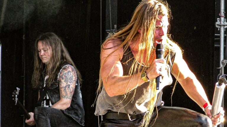 A mí me encantan, pero no sabía cómo iba a reaccionar un público de festival a una propuesta tan "incalificable" como la de los suecos, con ese AOR+Hard Rock+Funk+Disco+Rock&Roll+Soul+... Tras darnos las azafatas la bienvenida, brindis con champagne incluido, mis dudas se despejaron rápidamente cuando con el primer tema "Midnight Flyer" ya había un gran número de fans cantando el tema alrededor mío, y sobre todo cuando durante "Sometimes the World Ain't Enough" y sobre todo la contagiosa "Divinyls", veía a gente bailando como en una discoteca de los 80, incluso a portadores de camisetas de Metallica, Exodus o Kreator ¿Demasiada cerveza o los había poseído el comandante Strid y su equipo de vuelo? No sabría responder, pero si hubiese un control de true-metaleros a la salida seguro que no lo pasaban.