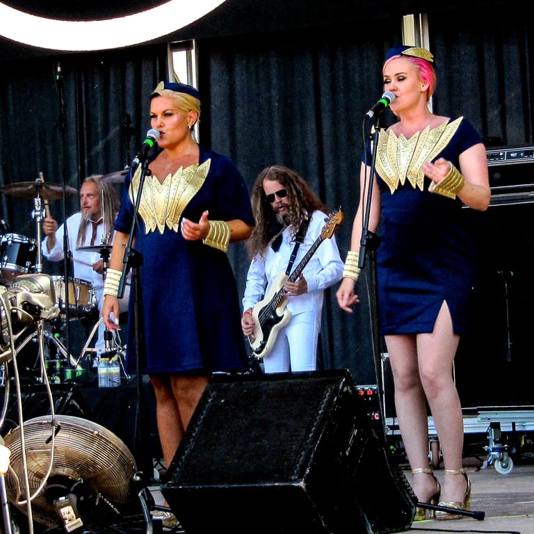 Nada más ver salir a escena a la banda se me viene a la cabeza el concierto de Chez Kane y pienso, "unos tanto y otros tan poco", y es que los suecos no escatiman en recursos. Nada es ficticio, todo es real y con dos coristas a falta de una.
