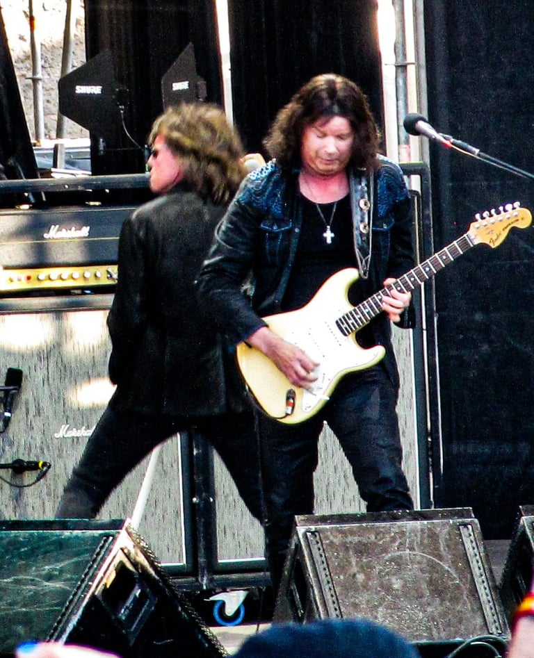 De aquí al final del tiempo reglamentario "Out of this world" toma el protagonismo de la velada con tres temas seguidos de este disco, "Let the Good Times Rock", "Ready or Not" que por fin consigue mover a John Norum de su sitio (pensé que se había quedado pegado de lo poco que se movía) y "Superstitious", durante el que Joey todavía tiene fuerzas para saltar y girar por el escenario, y que me alegro escuchar en versión eléctrica y no la acústica que a veces realizan.