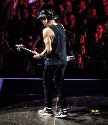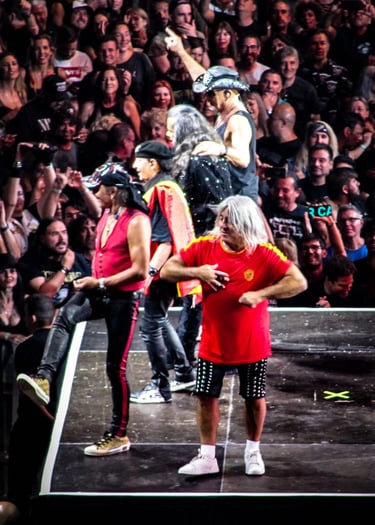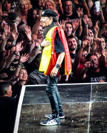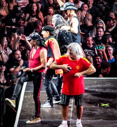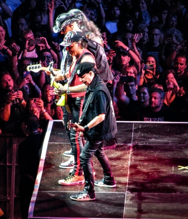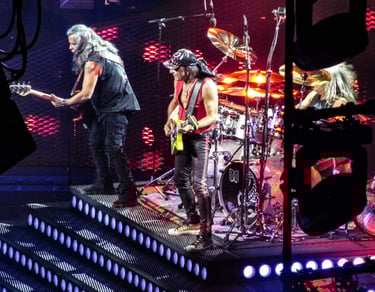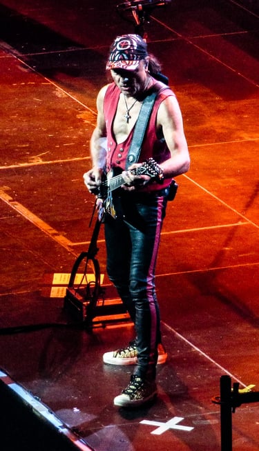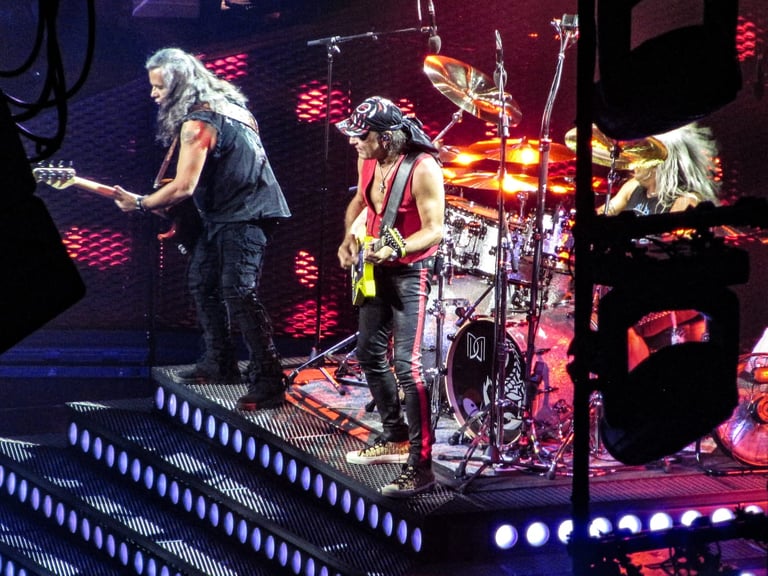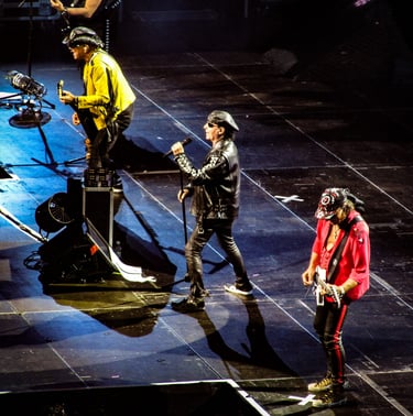 Llegó el momento de lucimiento de Mikkey Dee a lomos de su elevadísima batería, con un solo de esos que no aburren y con el que demuestra porqué fue el elegido por la banda, se llevó muy merecidamente una de las grandes ovaciones de la noche después de aporrear sin piedad a sus tambores. Hablando de baterías, cada vez que veía la parte trasera del chaleco que lucía Klaus Meine, me acordaba del malogrado James Kottak al lucir en la misma, supongo que a modo de homenaje, el eslogan "Rock & Roll Forever" de la misma forma que el americano llevaba tatuado en su espalda y que enseñaba al público cada vez que finalizaba su solo.