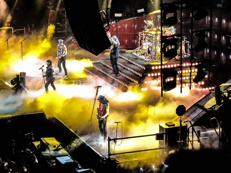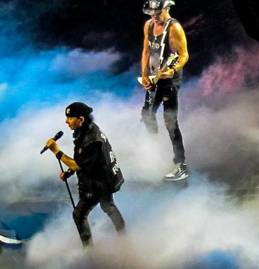 Todavía mientras aplaudíamos a rabiar al baterista sueco, sonaron las sirenas a la vez que Rudolf corría desenfrenadamente por el escenario con su guitarra echando humo (tenía hasta tubo de escape), llegaba el momento de "Blackout", durante el cual toda la banda pisó un poco más el acelerador para regalarnos otro de los grandes momentos de la velada. Con su típico grito de "Are you ready Madrid?", Klaus dio paso a la festiva "Big City Nights" cuyo estribillo cantado por todo el pabellón se tuvo que oír hasta en Cibeles, el animado cantante volvió a hacerse de nuevo con su pandereta para dar un cariz todavía más festivo al momento.