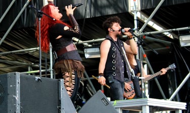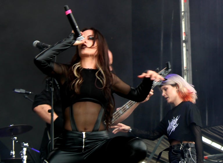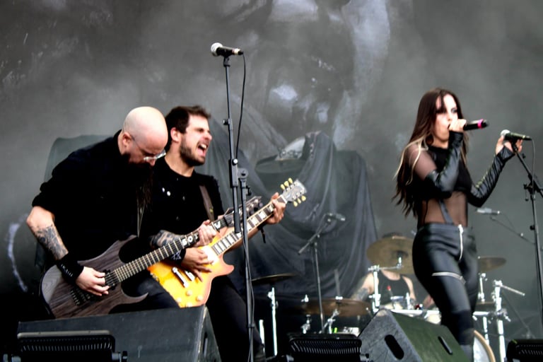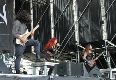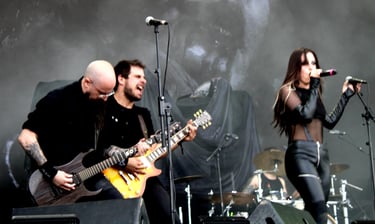 Sin duda la que más llama la atención es su vocalista Hynphernia, una verdadera frontwoman que sabe que todas las miradas se dirigirán a ella y cumple a la perfección. No dejará de sorprenderme que tras esa angelical apariencia puedan surgir tremendos gruñidos, señas de identidad de la banda. El resto de músicos cumplen muy bien con su cometido logrando mantener la atención durante todo el show aunque no seas un fiel seguidor de la banda.