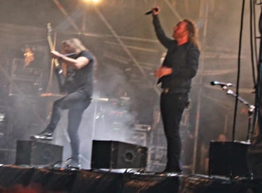 En este momento mi amigo Dani me dice que piensa que atrás se puede escuchar mejor y decidimos acercarnos a nuestro punto estratégico durante todo el festival. Efectivamente tenía razón, si donde estábamos a mí ya me sonaba bien, en la nueva ubicación el sonido era casi perfecto. La emotiva “Forever and One” fue el primer tema que disfrutamos en esa posición con la vuelta de Kiske y Deris tras la tregua ofrecida a sus gargantas por Kai Hansen.