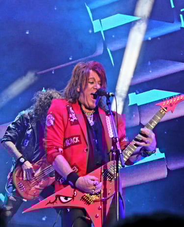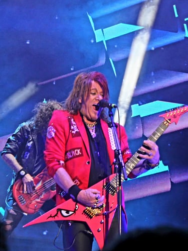 Llegaba el momento de lucimiento de Kai Hansen, al que se hace muy raro ver sin su guitarra colgada al cuello, que es como interpreta la primera parte del medley que nos ha preparado para dar visibilidad a la primera etapa de la banda con Metal Invaders , Victim of Fate , Gorgar , Ride the Sky y Heavy Metal (Is the Law). Momentazo de la noche para muchos de nosotros, ya que aunque siempre se habla de HELLOWEEN como los padres de Happy Power Metal, también lo fueron de ese Power Speed Metal que parieron en su primer disco. Vi a Kai Hansen mejor de voz que en las últimas ocasiones con Gamma Ray, seguramente por lo dosificada que está su participación durante el Show.
